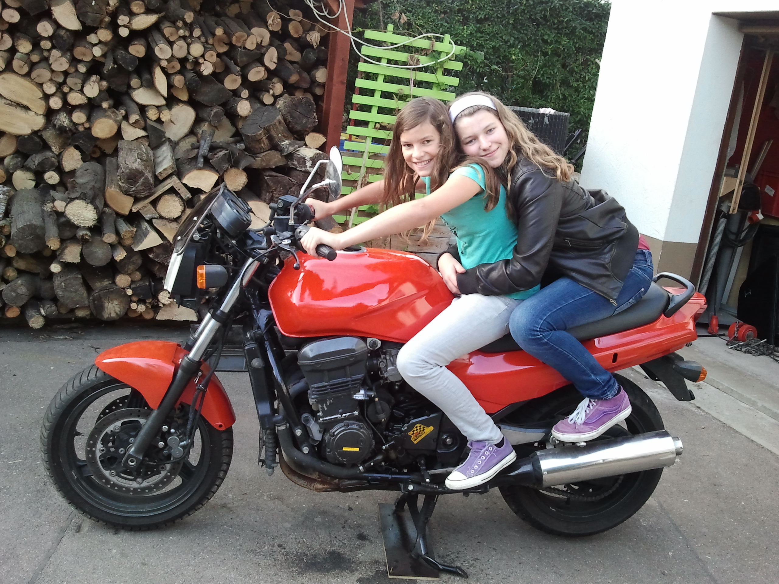 Die vordere ist jetzt 20 und fährt Kawa ER-6 N und die hintere mit 23 eine Honda CBR 125. Immerhin