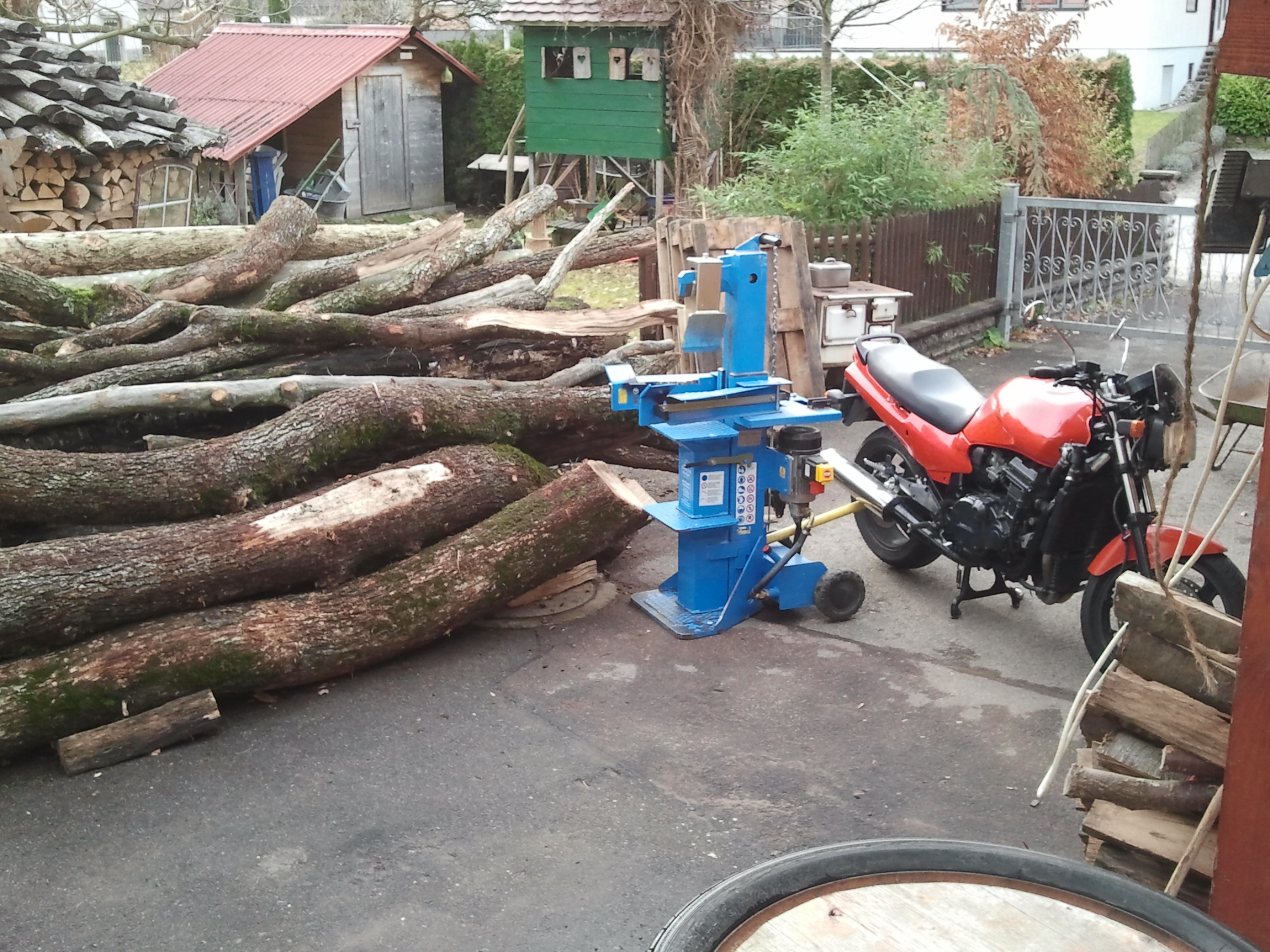 Man könnte meinen, das Mopped treibt den Holzspalter an... :D